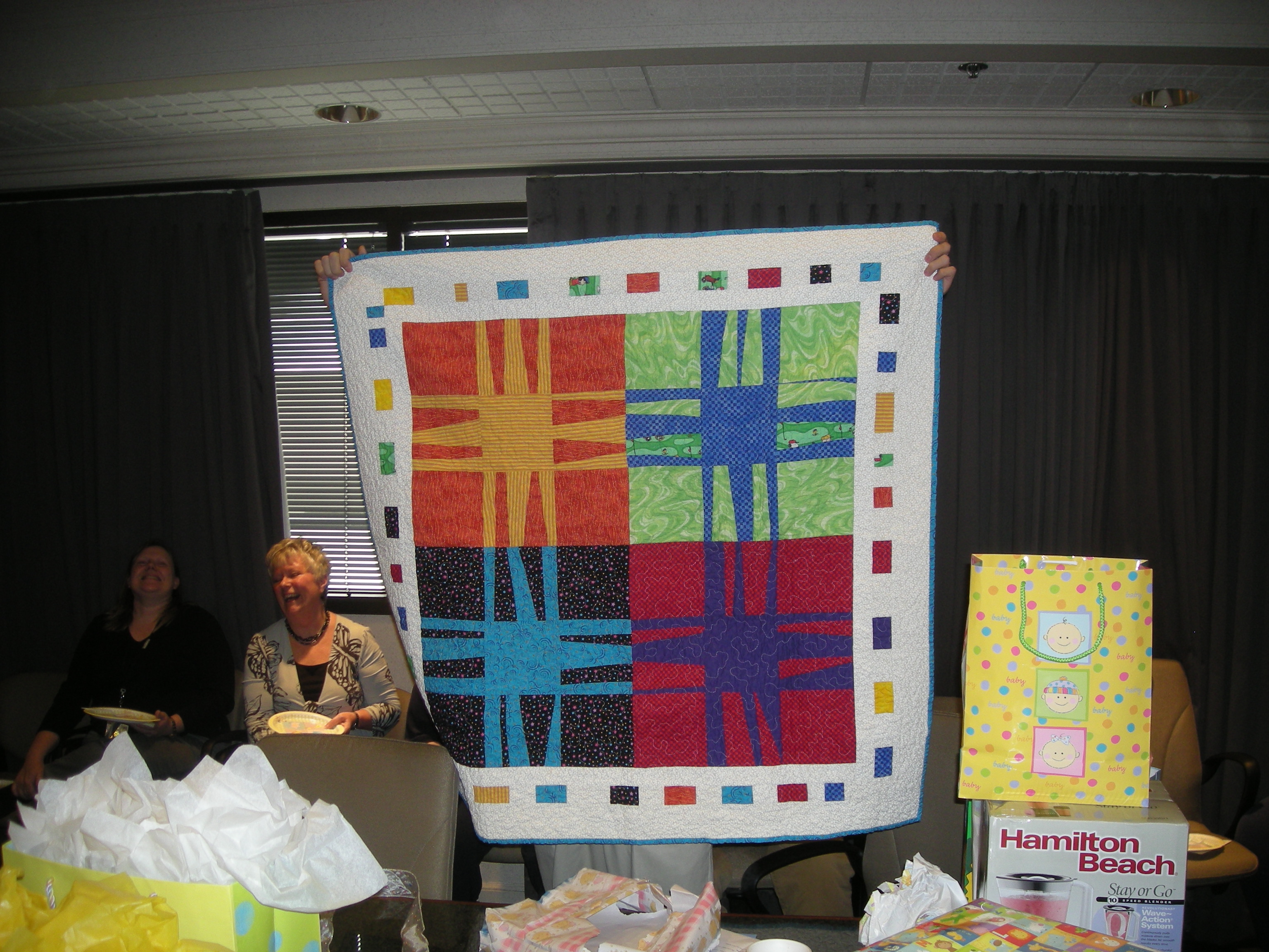 That is SO sweet! Who arranged the baby shower for him? Who made the quilt?? I bet he’s gonna feel bad if either one of those is the blood pressure girl. 😛