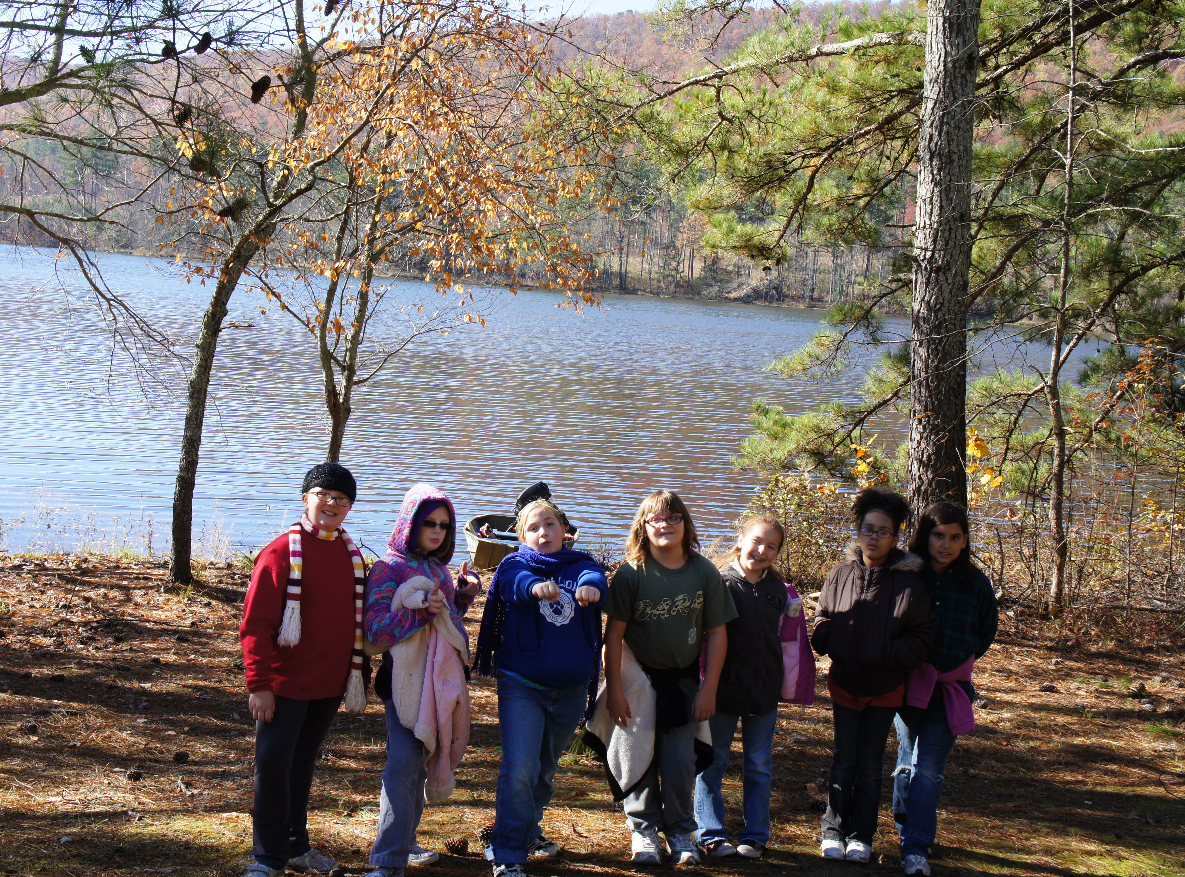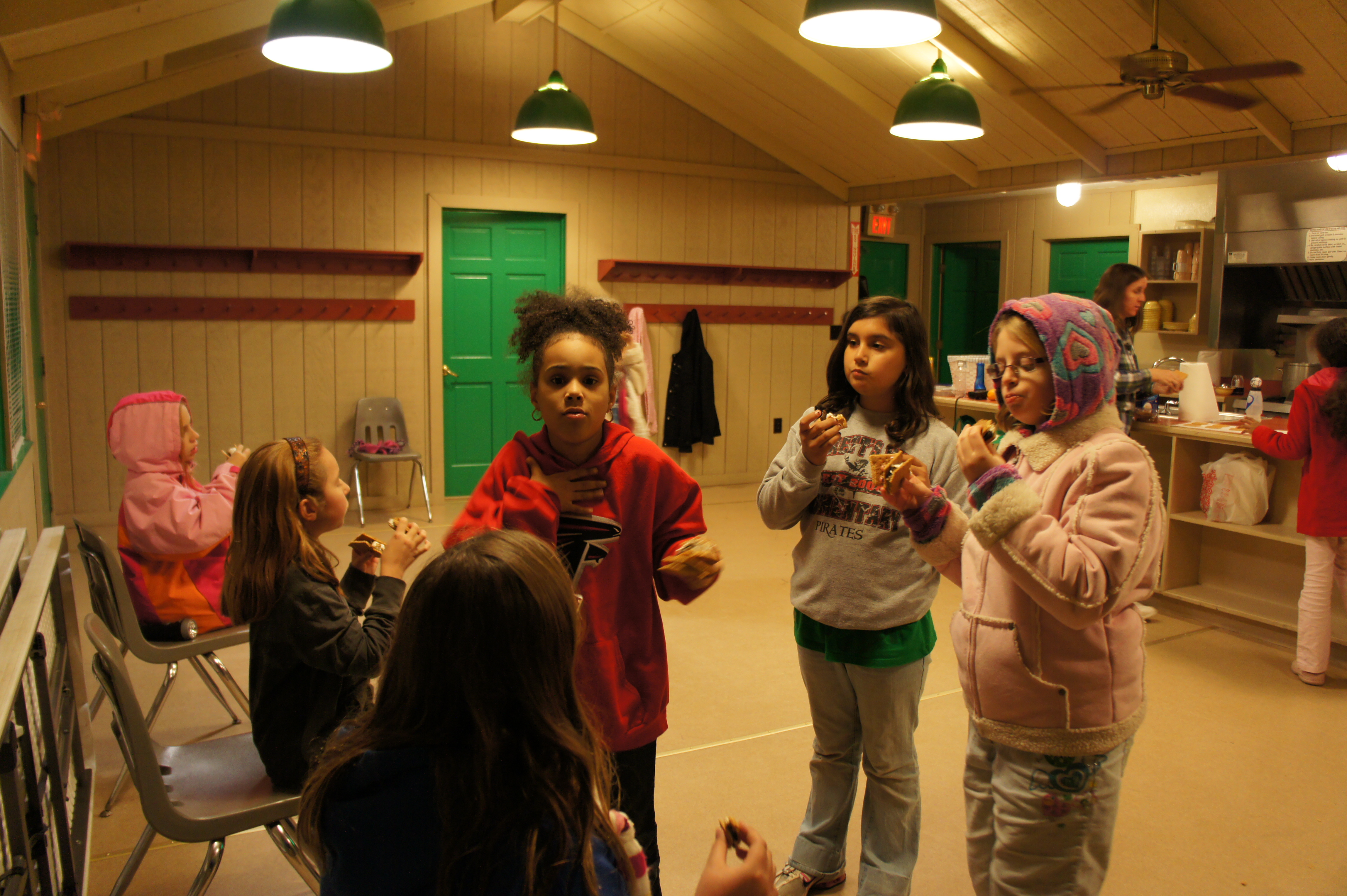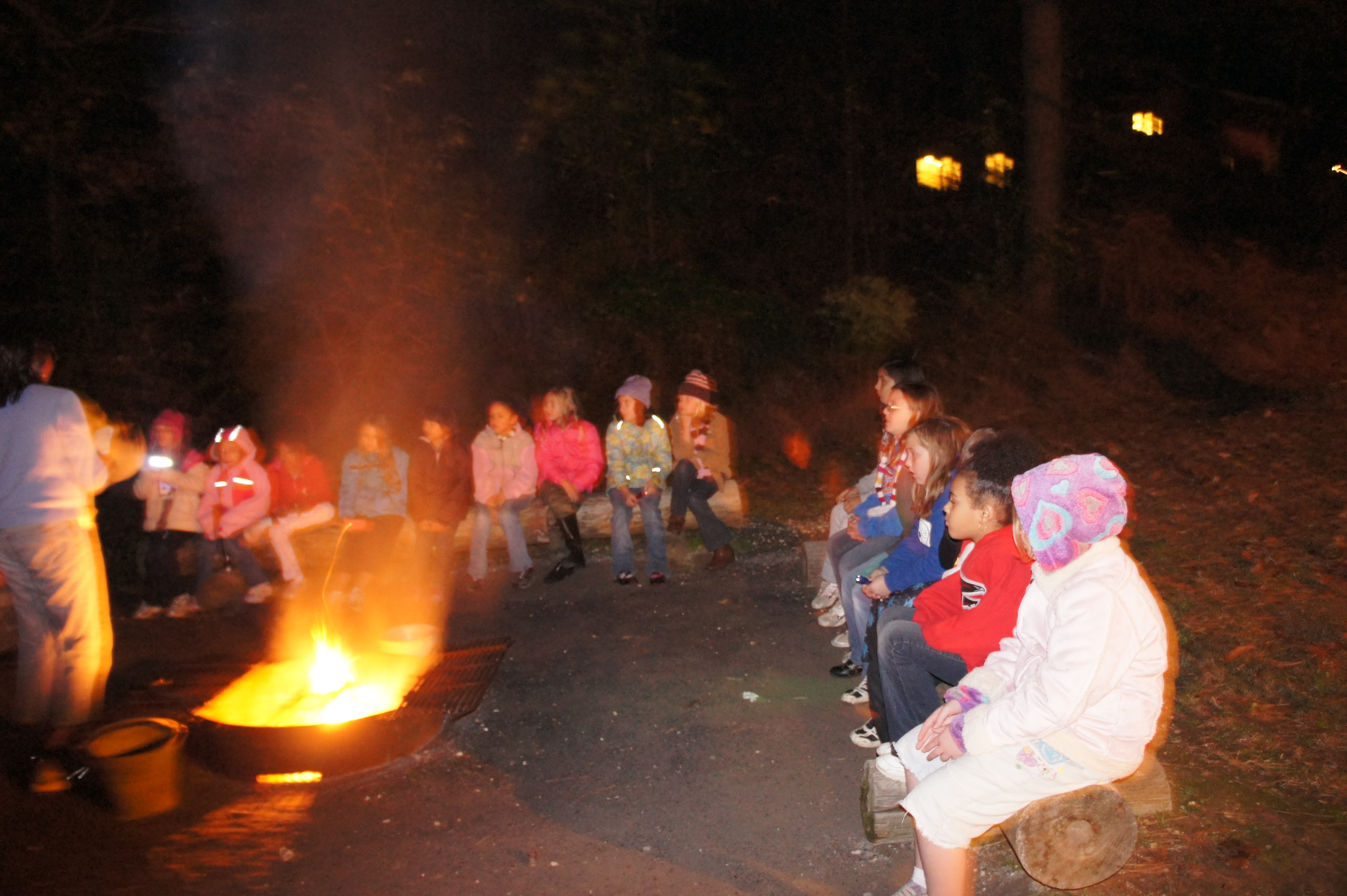 This weekend I took the Girl Scouts on another camping trip. This one was called Adventure Girls weekend and it had all the ‘adventurous’ types of camp activities. We were in a large cabin that had a kitchen and a bedroom + bathroom on each side. We had one side (12 beds in each room) and another troop had the other side. The other troop had brought campfire equipment, so when we arrived late Friday night, all the girls went out to the little fire ring behind our cabin and made s’mores and hot chocolate.