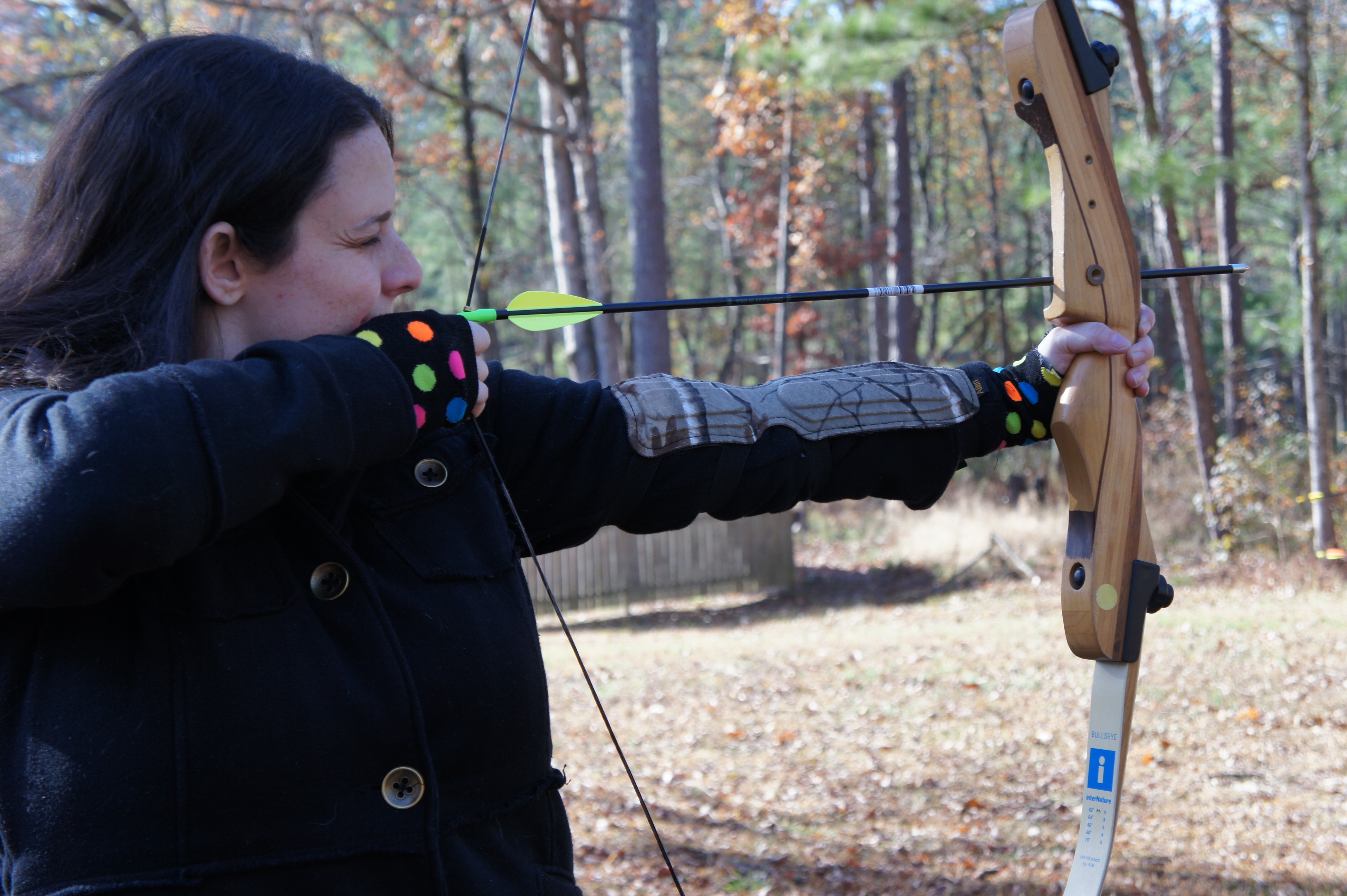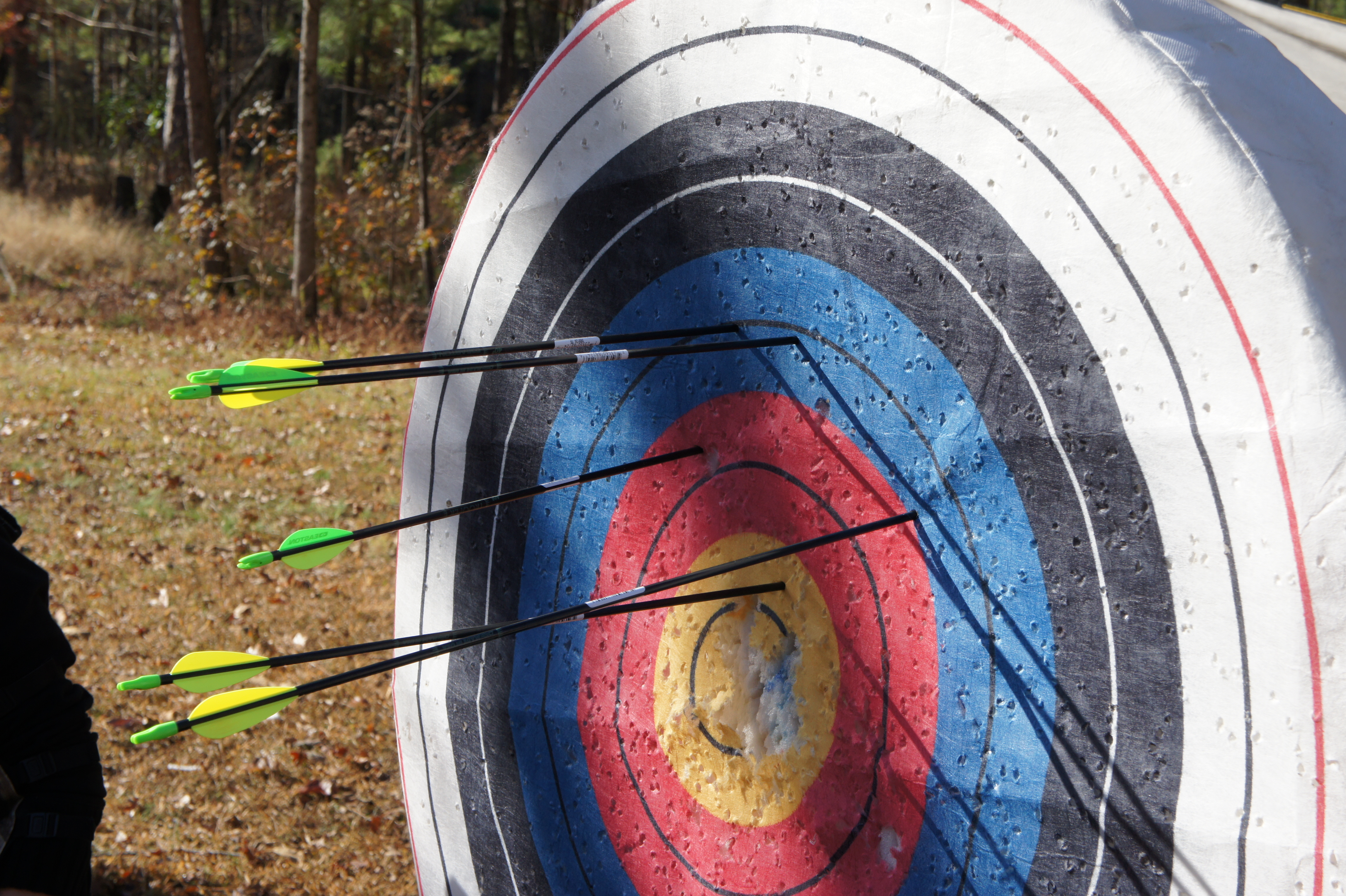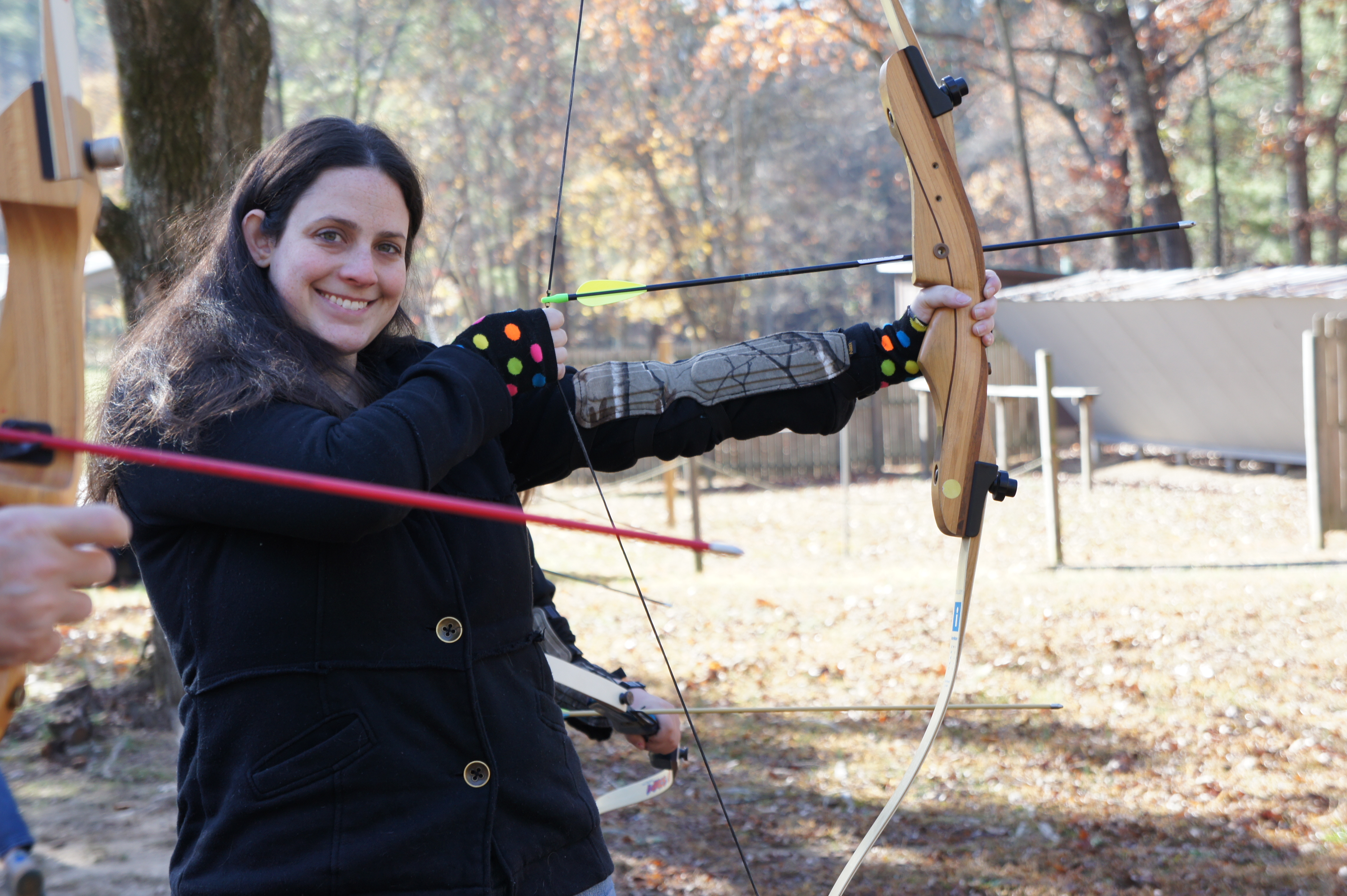 The next morning we all got up early and headed to breakfast. The camps all have dining halls that serve food like at a school cafeteria so we don’t have to worry about making food or anything. After breakfast, our first event was archery. For all the events we did, there was only ever like one or two girls in the troop that had ever done the activity ever before, so everything we did was a new experience for everyone. This camp was a *lot* less crowded than the last camp, so all the girls got more time to do all the events. They did well at the archery. Each girl hit the target at least once. I tried it, too. It was harder than I thought it would be to pull the bow taut, but I got all 5 of my arrows into the target. I didn’t get a bullseye, but I came close! One of my girls did get one!