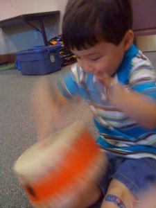 So now I’m working on creating my own curriculum from this huge online packet. Since I didn’t have it ready for today, we did a mini-field trip to the library where they were having a little music class “Drumming the Beat: Join our drum and music circle as local teacher Wendy Campagna leads us in an African music and culture experience!” So for thirty minutes he banged on a drum and other little things attempting rhythm but mostly just banging. Then I took him to the playground.