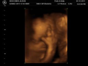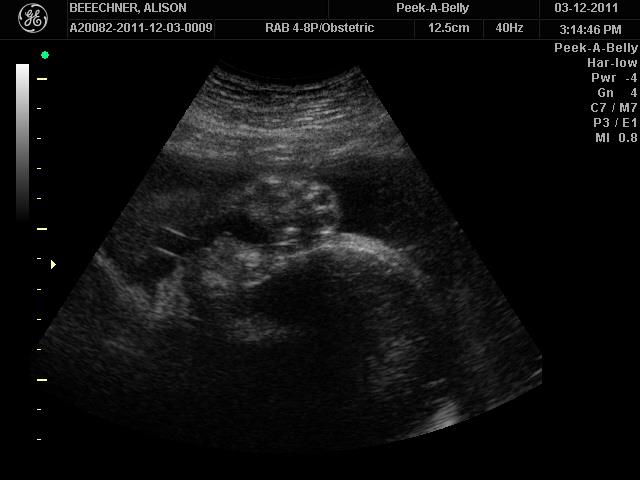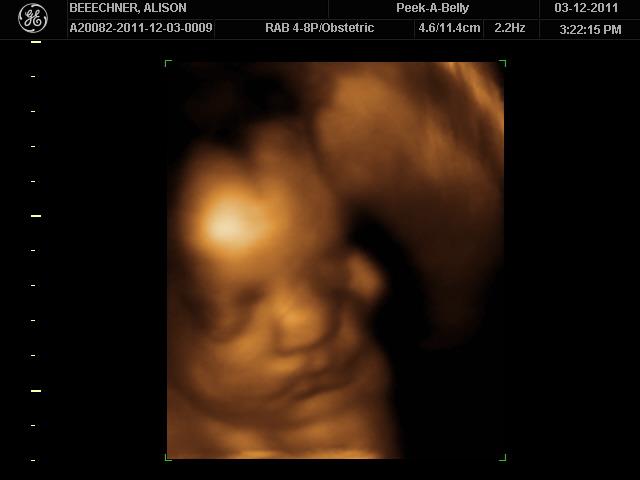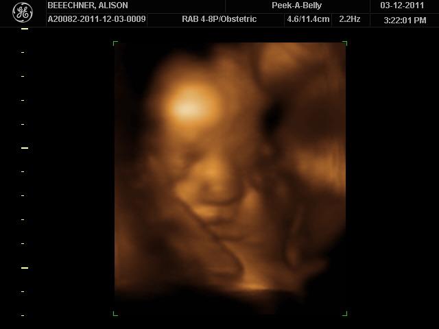 so having nightly heartburn isn’t a new thing, but having heartburn so bad that the meds dont fix it is. soo that means i either dont fall asleep until like 2am, or i fall asleep sitting up. went to the doc yesterday, glucose test passed and iron count was fine, so my exhaustion is normal and not a result of anemia. i’ve really hit the too big to move phase full on and getting up and down off things is difficult. mom, paul, lucas, and i did peekabelly on saturday, so below are pix of miss arianna! i’ll still have one more regular ultrasound in the coming month. i finally got some over-the-belly maternity jeans at kohls today. braxton hicks contractions seem to have decreased, but i guess she is getting too big for her house because her kicking has become stronger, of the uncomfortable variety as she attempts to rearrange my organs from the inside. overall, though, i still feel like this pregnancy has been easier than the last one. i don’t know if it is because i’ve done it before so i’ve come to expect all the ucky feelings, or if they are just less this time around.
